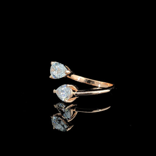2 Stones Pear Diamond Ring, .40ct Lab Grown Diamond With 18K Gold Settings, White, Yellow, Rose Gold