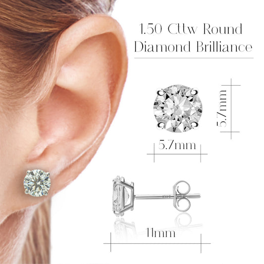 Round Halo Stud Earrings, 2 Stones 1.50ct Lab Grown Diamond With 18K White Gold Settings
