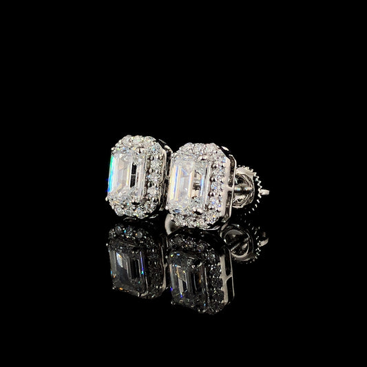 Emerald-Cut Halo Stud Earrings, 2 Stones 2.50ct Lab Grown Diamond With 18K Gold Settings, White, Yellow, Rose Gold