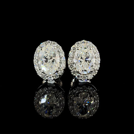 Oval Halo Stud Earrings, 2 Stones 1.50ct Lab Grown Diamond With 18K Gold Settings, White, Yellow, Rose Gold