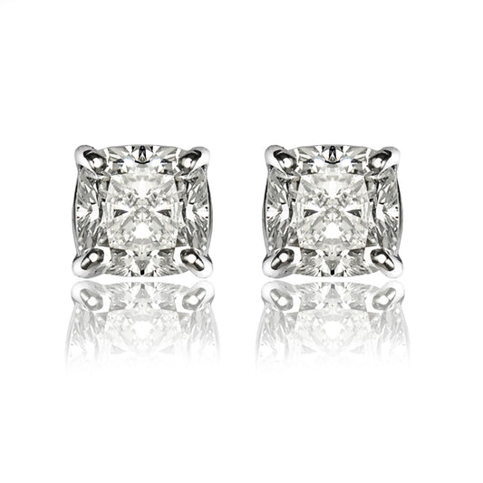 Cushion Cut Stud Earrings, 2 Stones .60ct, 1ct, 1.40ct, 2ct, 4ct Lab Grown Diamond With 18K Gold Settings, White, Yellow, Rose Gold