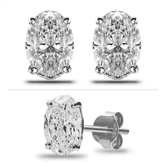 Oval Brilliant Stud Earrings, 2 Stones .60ct, 1ct, 1.40ct, 2ct, 4ct Lab Grown Diamond With 18K Gold Settings, White, Yellow, Rose Gold